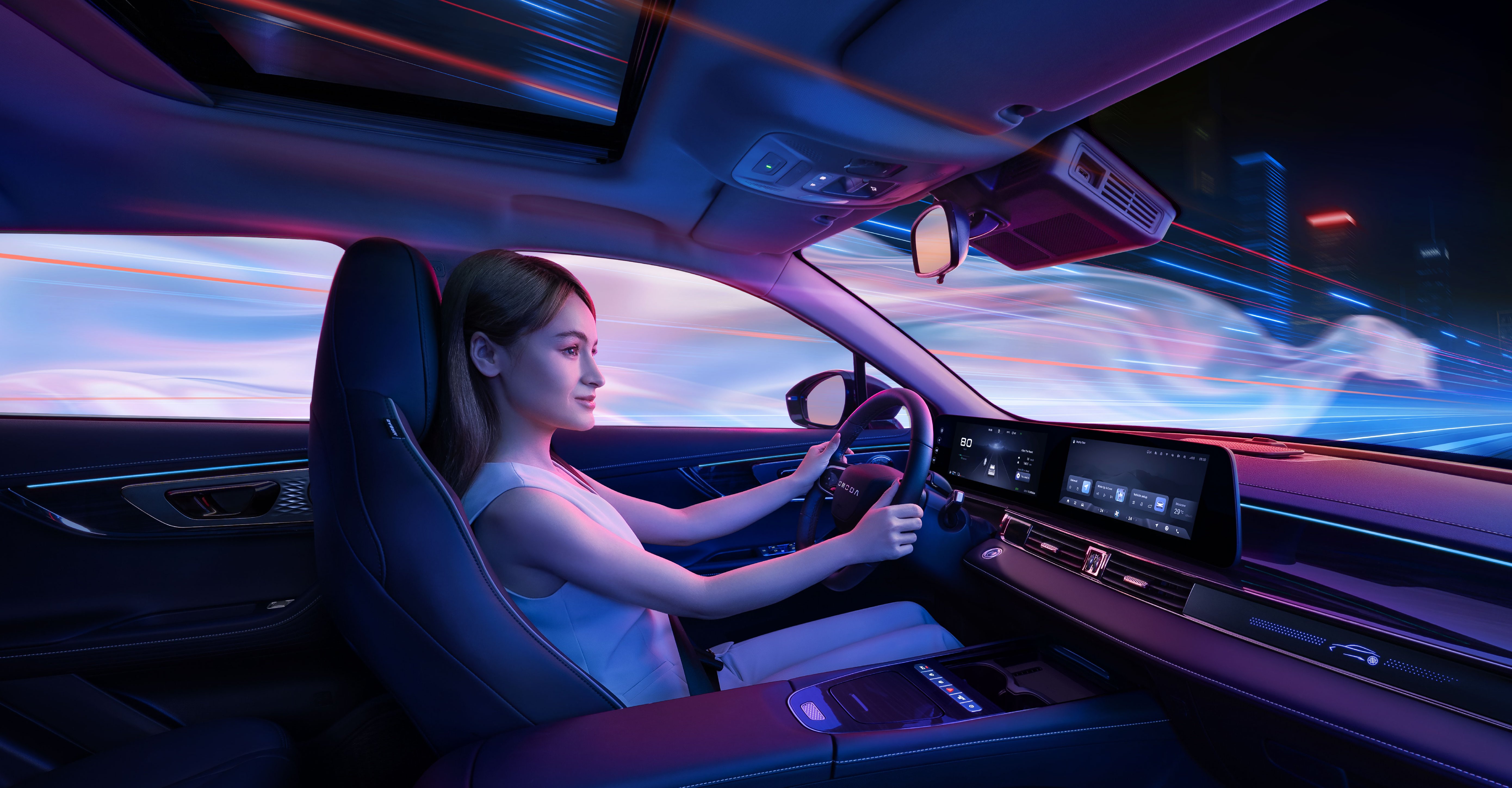 Wnętrze OMODA 5 łączy nowoczesny styl z wysokiej jakości materiałami, oferując przestronność i komfort. Wyróżnia się ergonomicznymi fotelami, futurystycznym kokpitem oraz zaawansowanymi technologiami, takimi jak asystent głosowy Hello OMODA czy nowoczesny system multimedialny.